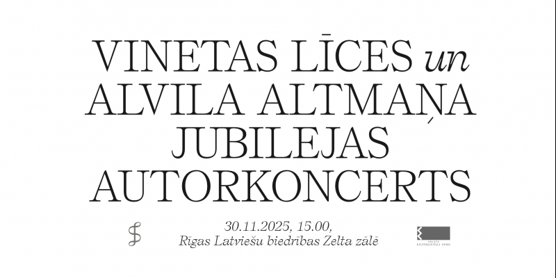 Latvijas Komponistu savienība piedāvā komponistu Vinetas Līces un Alvila Altmaņa jubilejas autorkoncertu, kas izskanēs 30. novembrī plkst. 15.00 Rīgas Latviešu biedrības Zelta zālē. Programmā dzirdēsim abu autoru skaņdarbus pazīstamu latviešu mūziķu interpretācijās. Koncertā muzicēs pianiste Agnese...