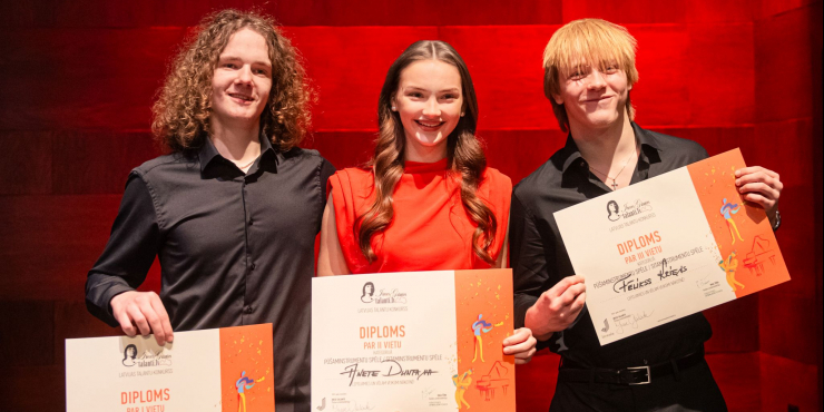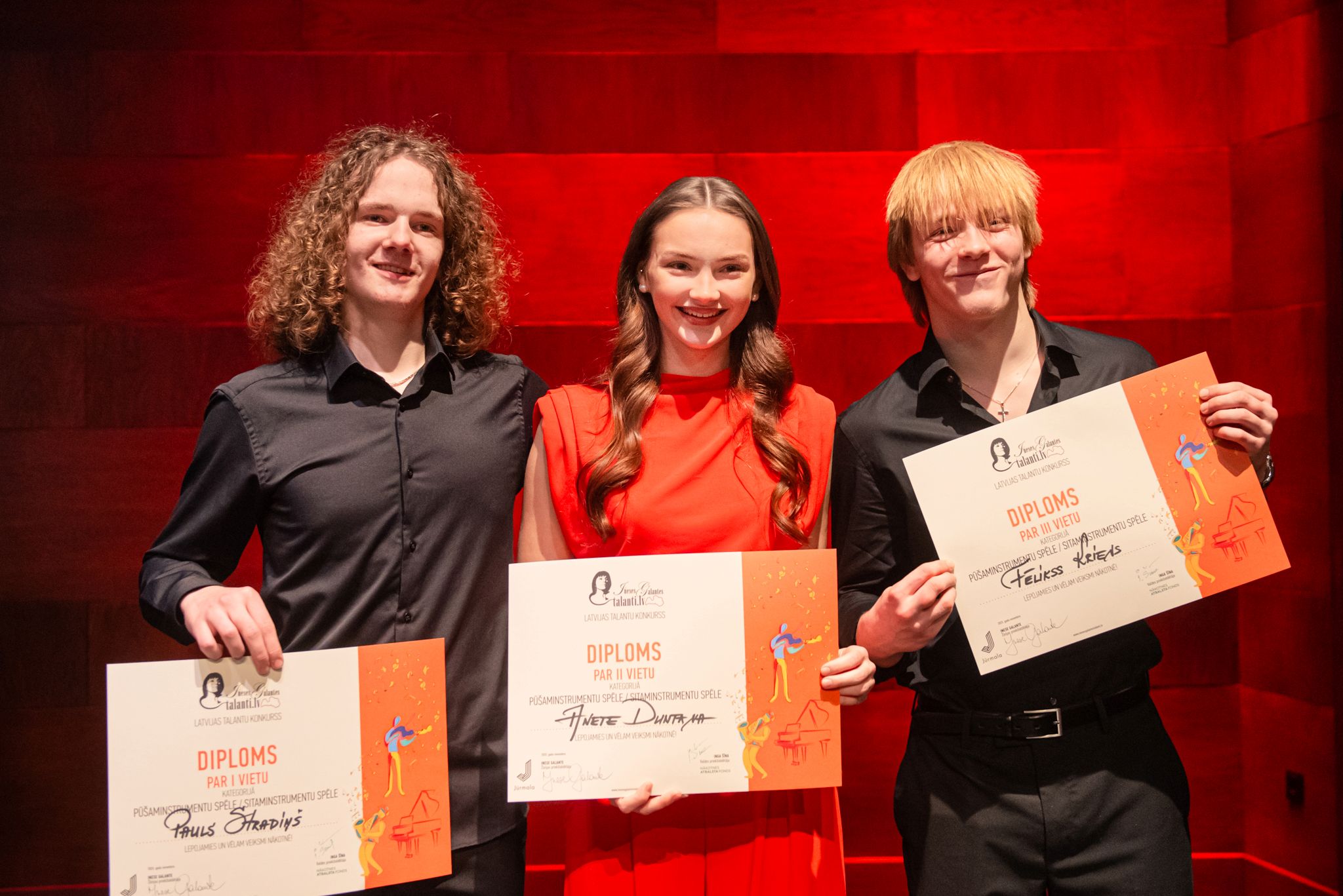 kategorijā “Taustiņinstrumentu spēle” – Melissa Takanbekova (klavieres, 1.vieta), Estere Dambīte (klavieres, 2.vieta), Toms Rolavs (akordeons, 3.vieta),