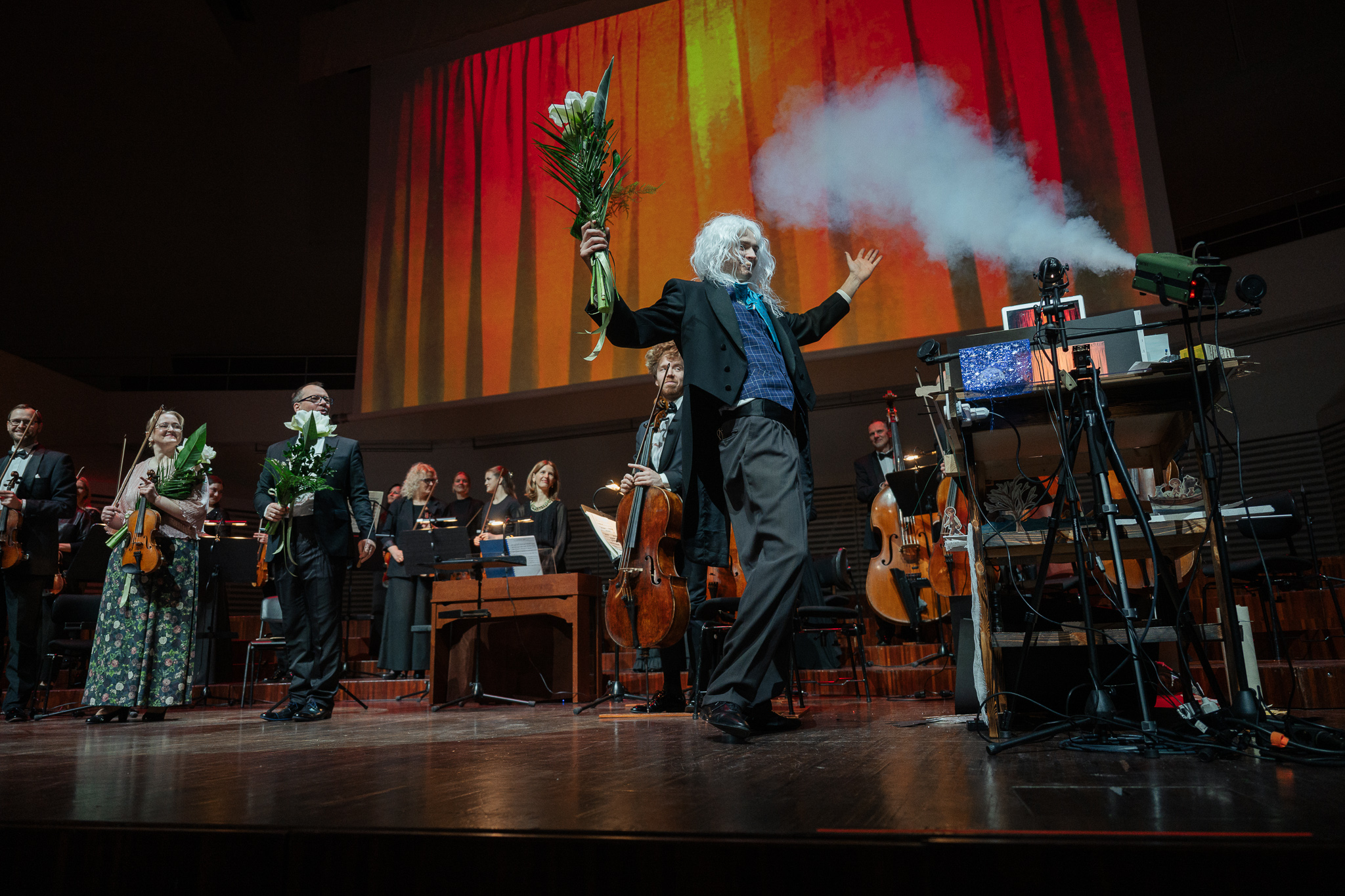 Pie Liepājas Simfoniskā orķestra diriģenta pults šajā koncertā stājās Reinis Lapa, savukārt solo atskaņoja orķestra pirmā vijole – Līga Baltābola.