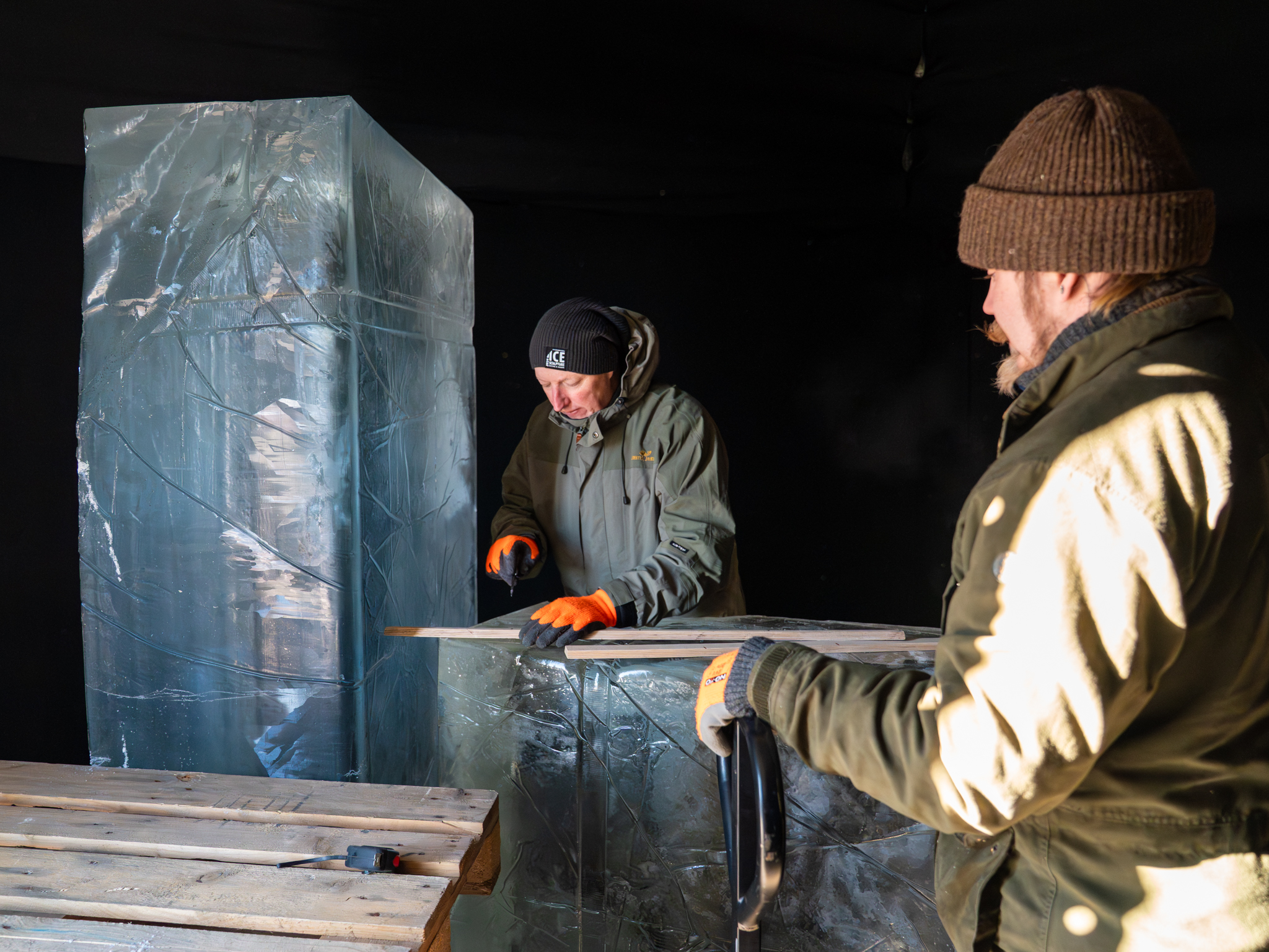 Pirmajās konkursa dienās top vērienīgie komandu darbi. Lai pasargātu skulptūras no laikapstākļu ietekmes, mākslinieki strādā speciāli aprīkotās teltīs, kas ļauj ledum saglabāt dzidrumu, formu un izturību līdz pat festivāla atklāšanai. Komandu skulptūras plānots pabeigt līdz trešdienas vakaram, savukārt no ceturtdienas tēlnieki pievērsīsies individuālo darbu veidošanai.