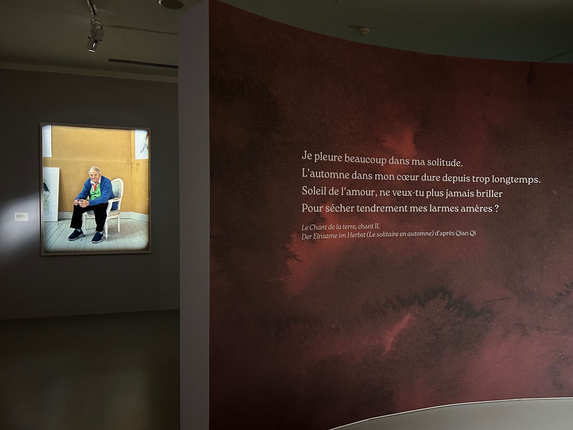 Projekts pēta saikni starp cilvēku un dabu: zemi, laukiem, gadalaikiem, ziediem, vientulību un dzeju, piedāvājot izvērstu emocionāli piesātinātu stāstu sešās sadaļās: “Alma mater”, “Vientuļnieks rudenī”, “Pavasara reibums”, “Flourescenses”, “Četri gadalaiki” un “Perspektīva Deivida Hoknija darbos”, ko papildina trīs imersīvās telpas. Katrā zālē notiek saspēle starp glezniecību, mūziku un tekstu, atspoguļojot Mālera skaņdarbu “Dziesma par zemi” (“Das Lied von der Erde”). 1907.–1908. gadā sacerētā simfonija ir veltījums dabai, tās trauslajam skaistumam un dzīvības spēkam. Izstādē tas atklājas kā kopīga tēma – universāls gars, kas caurvij darbus, savieno māksliniekus un pavada apmeklētāju gan vizuālā, gan skaņas instalāciju pasaulē.