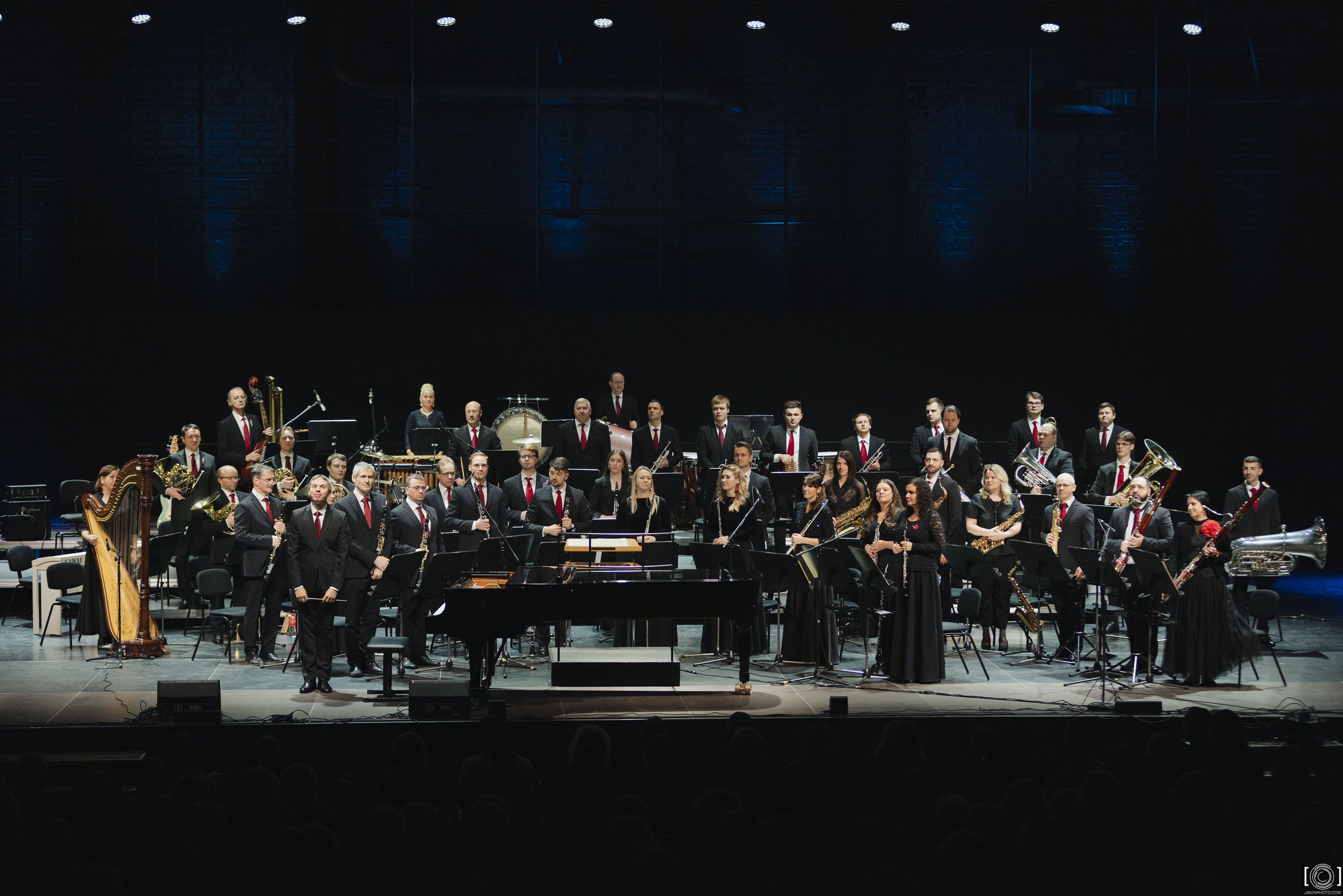 Nozīmīga vieta programmā atvēlēta Dmitrija Šostakoviča Kamersimfonijai (Op.110a) instrumentācijā pūšaminstrumentu orķestrim. Tas ir emocionāli piesātināts darbs ar daudzslāņainiem zemtekstiem un kuru komponists to veltījis Otrā pasaules kara upuru piemiņai, taču Šostakoviča mūzikas valoda sniedzas plašumā, vēstot par cilvēka ievainojamību un vēstures atmiņas nozīmi. Izskanēs arī norvēģu komponista Knuta Nīsteda skaņdarbs “Pia memoria” deviņiem metāla pūšaminstrumentiem – garīgi piesātināta muzikāla meditācija, kas balstīta mesas tradīcijā, apvieno ziemeļniecisku skaidrību ar laikmetīgu valodu un rada iekšējas apceres noskaņu. No laikmetīgās mūzikas repertuāra koncertā dzirdēsim arī amerikāņu komponista Ērika Vitakera trauslajā skaņu valodā izteikto gaismas un cerības simboliku opusā “Lux Aurumque”.