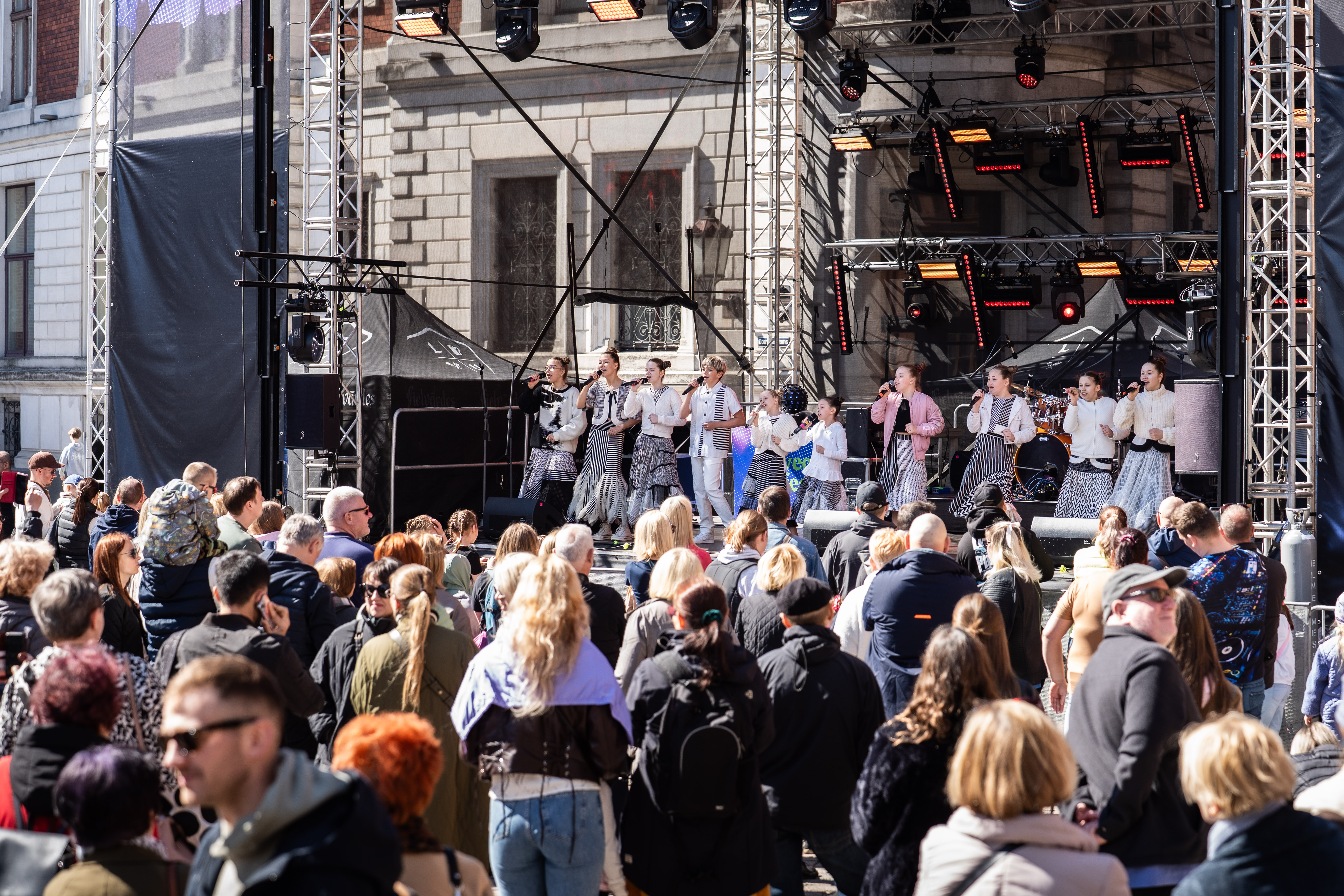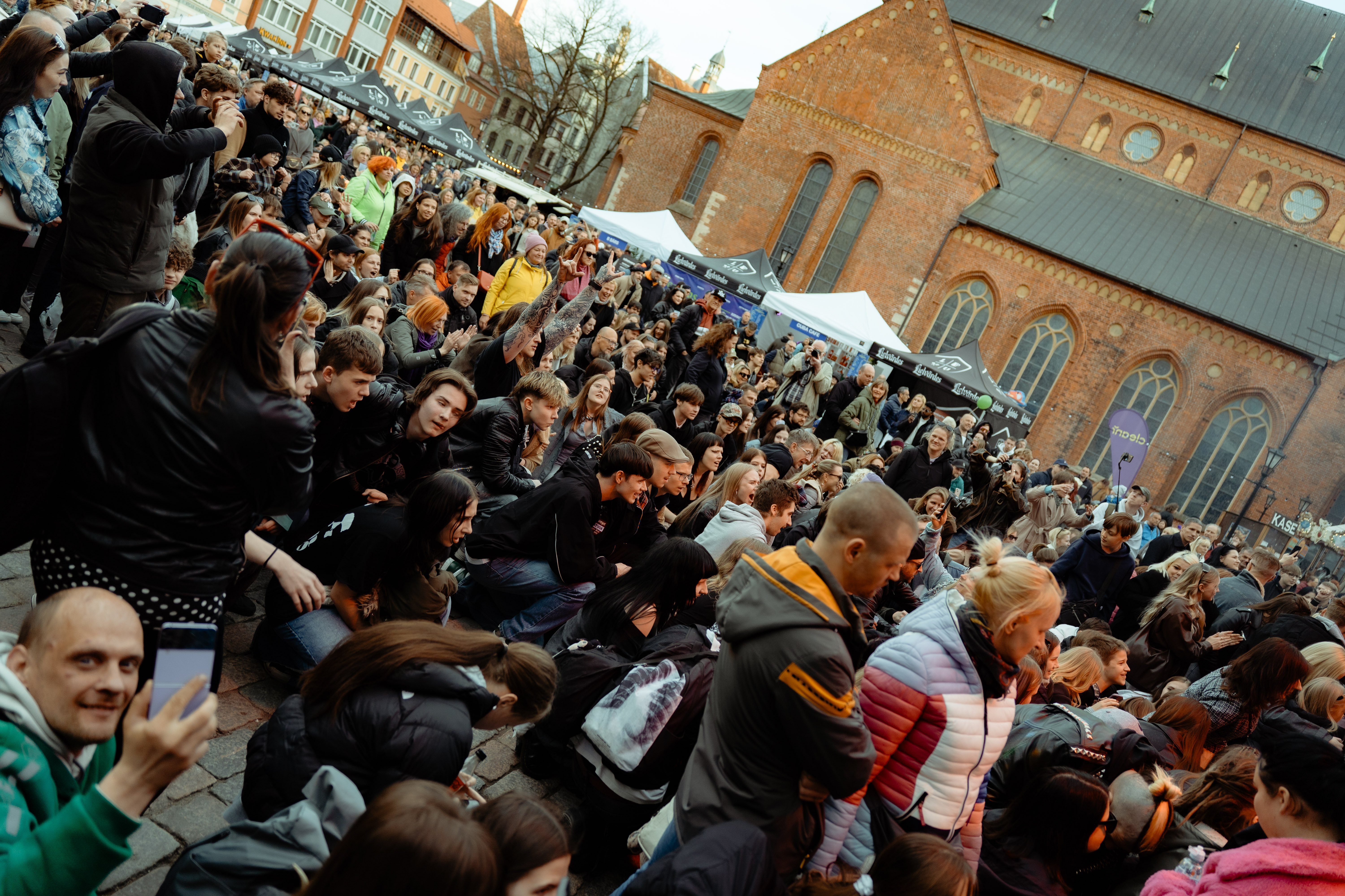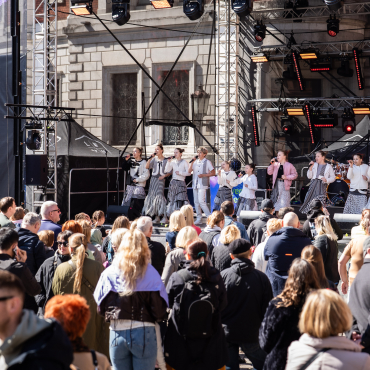 Savukārt no plkst. 15.00 Vecrīgu piepildīja zaļumballes noskaņas ar grupu “BITĪT’ MATOS”, kur visā pūlī tika dejota “Es izjāju prūšu zemi”, bet vakarpusē skatuvi pārņēma pavisam jaudīga enerģija – Doma laukumu piepildīja “Raum”mūzika, no pūļa lidoja krūšturi “LABVĒLĪGAJAM TIPAM”, apmeklētājiem kopā dziedot visas Tipa “himnas”, “PND” lika galvām kustēties vienā ritmā, noslēdzot ar kārtīgu ballīti pie grupas “OLAS”. Par muzikālo noskaņu starplaikos rūpējās diskžokeji “TOMS GRĒVIŅŠ” un “RAIMONDA”. Vecrīgas gaiļiem šonakt nebija lemts gulēt.